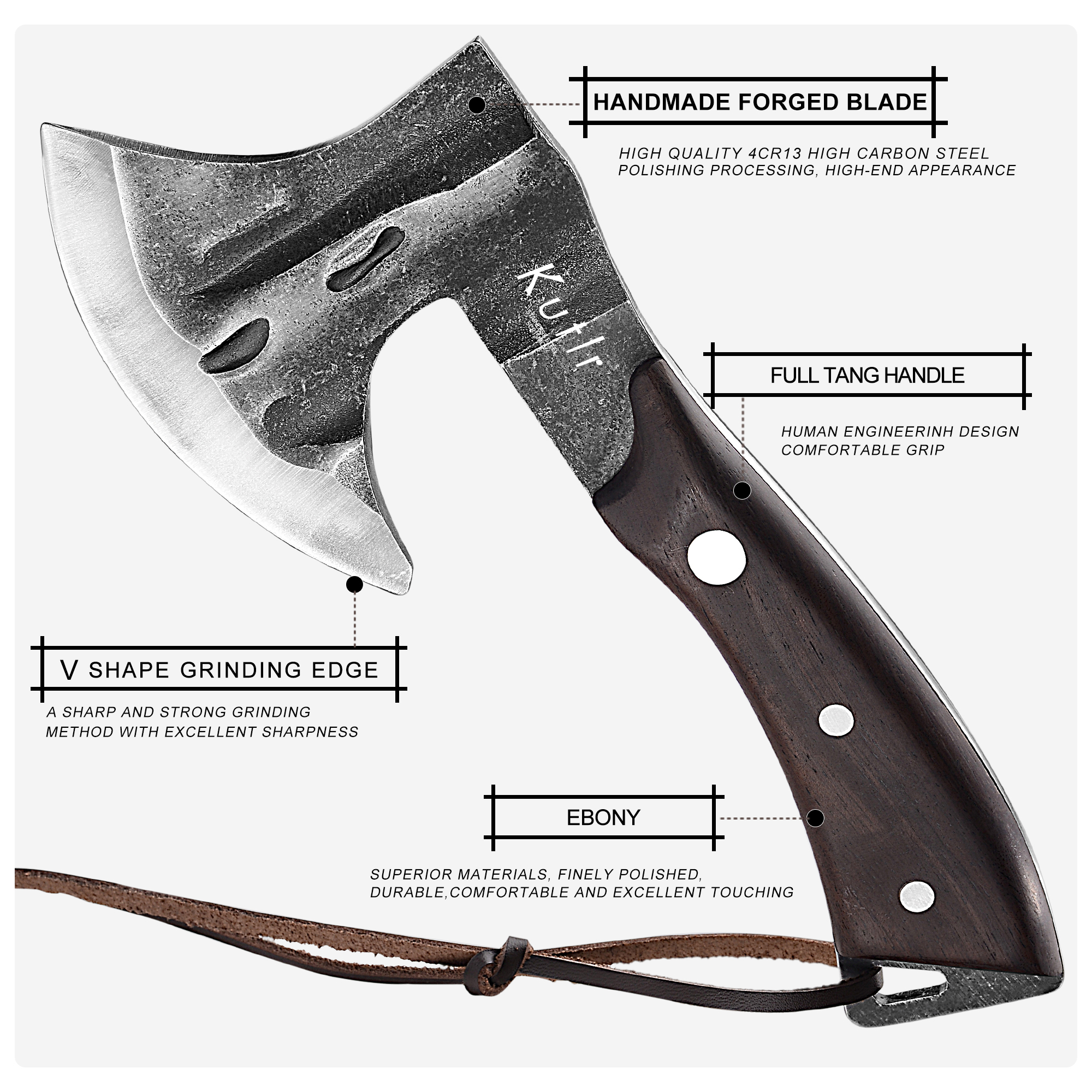 KUTLR 4″ Handmade Forged Axe, Carbon Steel 4Cr13, Ebony Wood Handle (AXE-8)